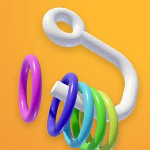 Off The Hook is a clever and satisfying puzzle game where your goal is to slide colorful rings off a twisting metal shape and drop them safely into a hole below. Players use intuitive mouse or touch controls to manipulate the rings, planning their moves to navigate the unique 3D structures. This browser-based HTML5 experience offers a relaxing yet engaging challenge, perfect for fans of spatial reasoning puzzles like Tangrams or Pipe Mania, available on any device.